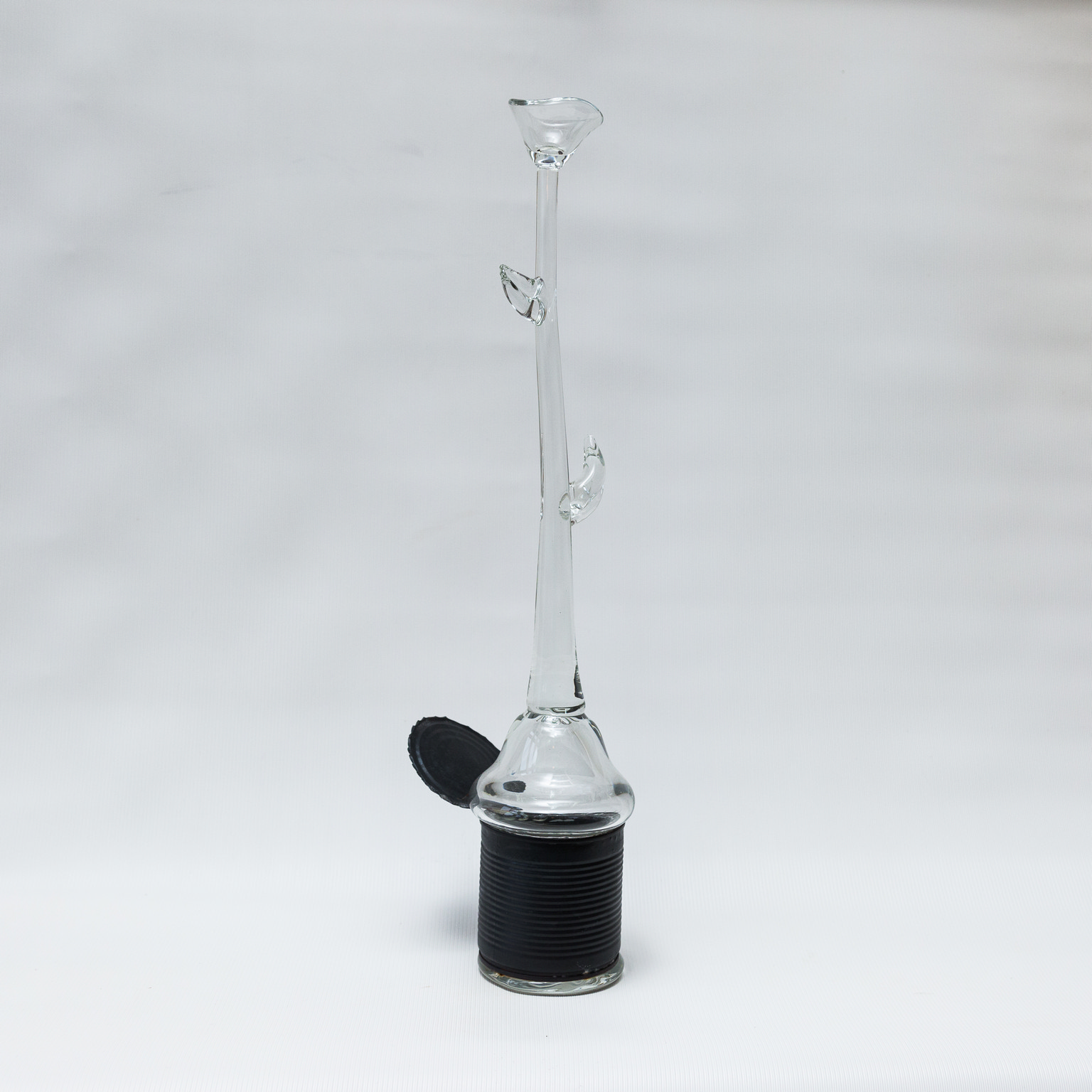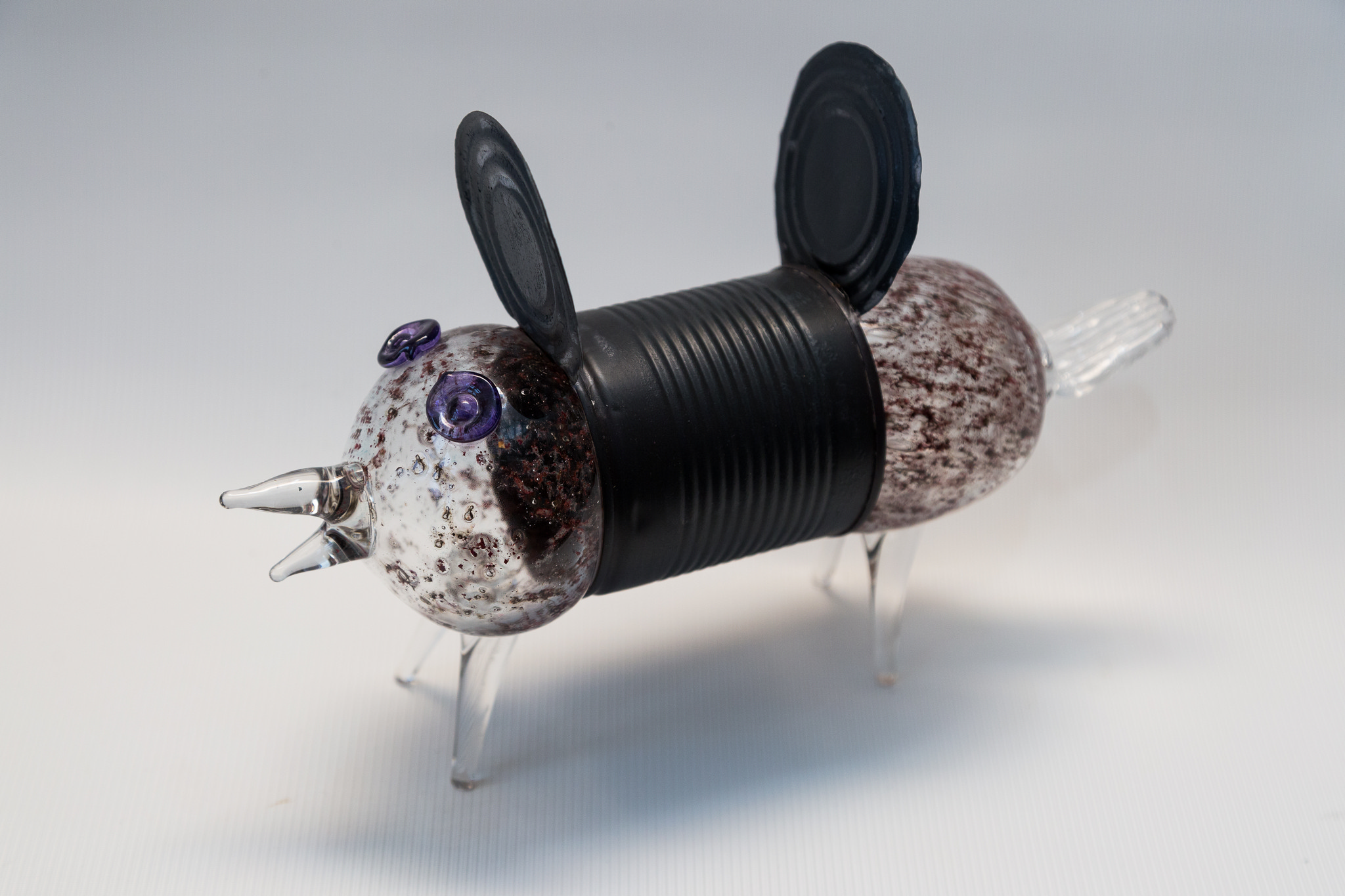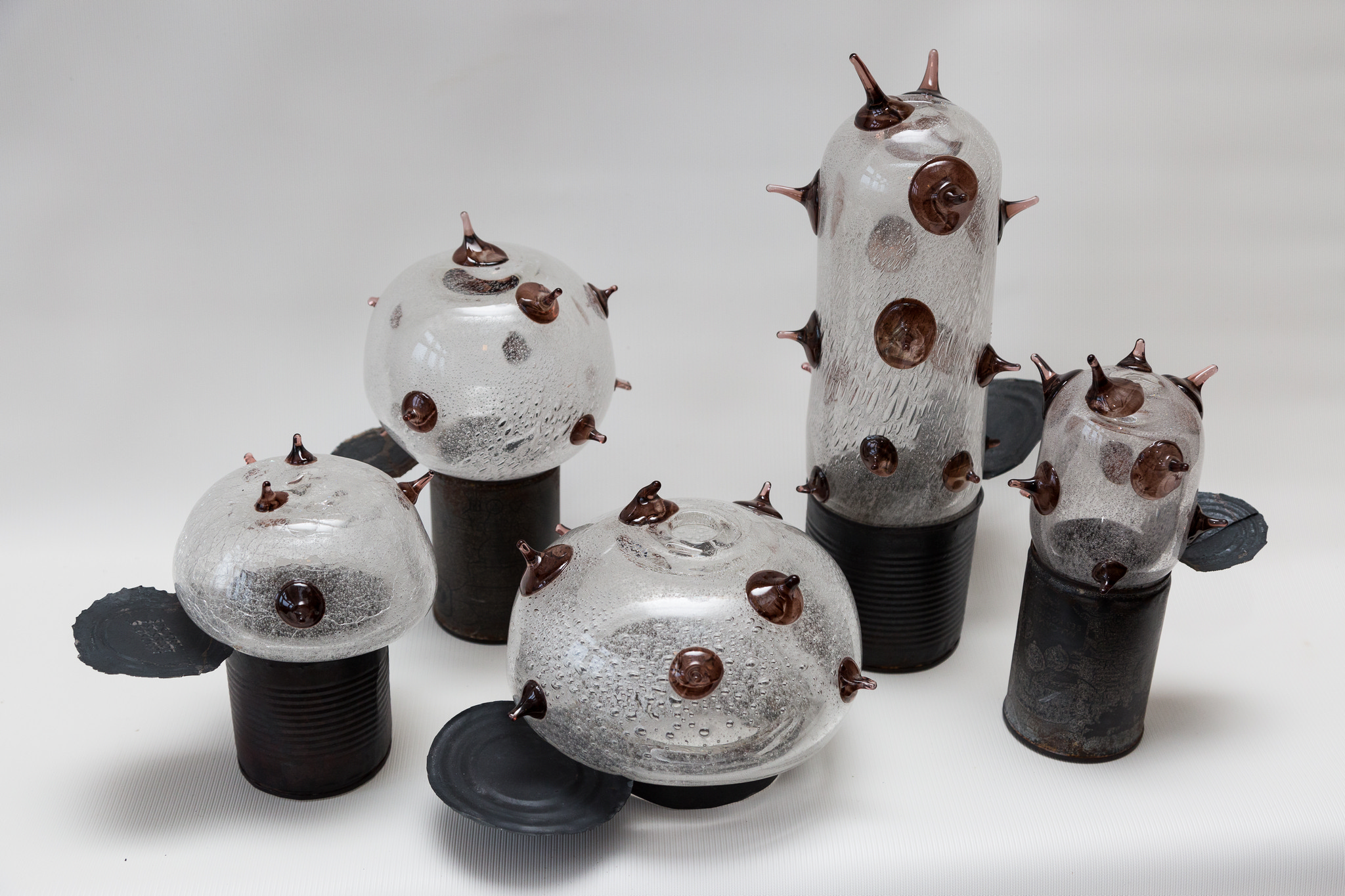 Безусловно, всё зависит от желания автора. Иногда ирония создается именно обстоятельствами. Так появился у меня проект «Консерва». На одном из симпозиумов на СЗ «Неман», когда не было времени и возможности изготовить форму для выдувания стекла, я использовала банку из-под консервы. В результате получилась довольно большая коллекция работ с различными образами и названиями. Одна часть этой серии выставлена в постоянной экспозиции нашего Национального художественного музея. Работа называется «Пришельцы».
