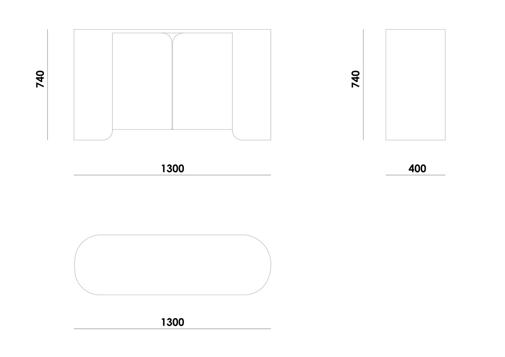 Габариты (д/ш/в) мм 1300 / 400 / 740